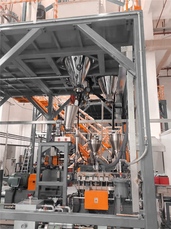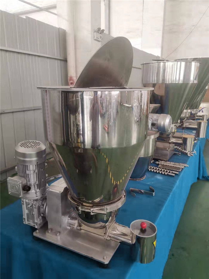 失重式喂料機由料斗、喂料器(單、雙軸螺旋喂料器)、稱重系統和調節器組成,在操作中,料斗、物料和喂料器共同連續地進行稱重。隨著物料送出后,測量真實的失重速率,并將它與所需要的失重速率(設定值)加以比較。通過調解喂料器速率來自動修正偏離設定點的偏值。從而可以均勻準確地連續喂送物料。